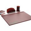 Planificador de escritorio en cuero, con sujetador de hojas en cabecera.